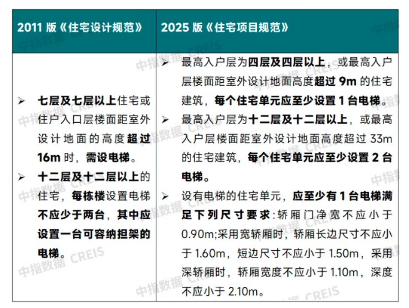 電梯設置方面,新版《住宅項目規(guī)范》降低了電梯設置的樓層要求,從原規(guī)定“七層及以上需設電梯”調(diào)整為“四層及以上需設電梯”。