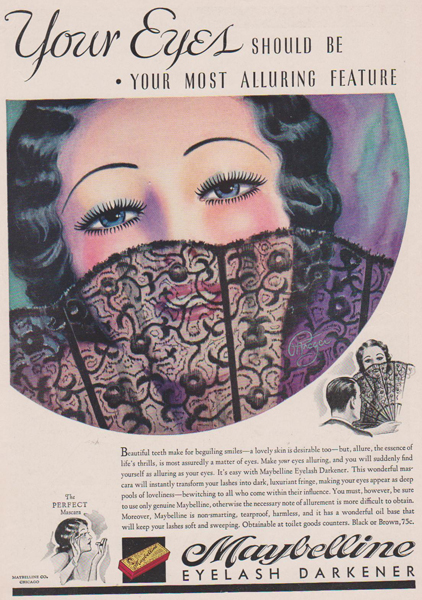 1913年的時候(不要懷疑時間,就是那么早),有個叫做瑪貝爾(Mabel)的姑娘單戀上一個帥小伙兒,為了讓睫毛好看好看一點兒,這姑娘就用凡士林加上煤灰來為自己的睫毛上了點兒妝。而這個土方子,還是她從某時尚雜志上看來的。
