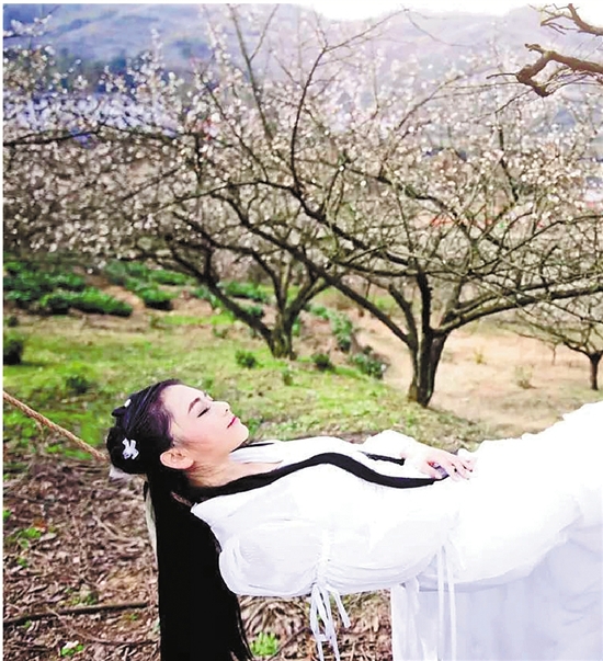 浙江在線03月22日訊(錢江晚報(bào)通訊員陳玉婷 記者苗麗娜)盛開的香雪梅海間,一個(gè)女孩白衣勝雪?;蛭鑴t灑不拘,行云流水;或輕曳秋千,靈動(dòng)輕盈;或側(cè)顏微笑,嬌美動(dòng)人。