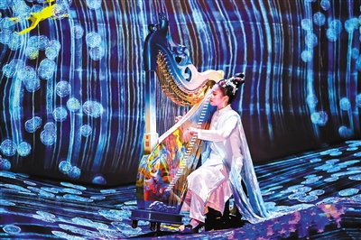 以往的音樂會中,觀眾是在固定位置坐著聽,而在沉浸音樂會《只此一夢》上,現(xiàn)場的觀眾跟隨著指引不斷行進(jìn),從而開啟了一種新的聽音樂和逛展覽的模式。例如,《無窮無盡的水晶宇宙》本來就是北京teamLab無相藝術(shù)空間的網(wǎng)紅打卡點(diǎn),如水晶雨滴一般的視覺呈現(xiàn),配合琵琶叮咚如玉珠散落水晶盤中,竹笛聲悠揚(yáng)似鷓鴣穿飛瓊林苑里,正是玉樹瓊枝點(diǎn)點(diǎn)鳥,珠花盛開鷓鴣飛!《只此一夢》沉浸音樂會是可以聽的畫面,是可以看的音符,觀眾與樂手可謂“零距離”。
