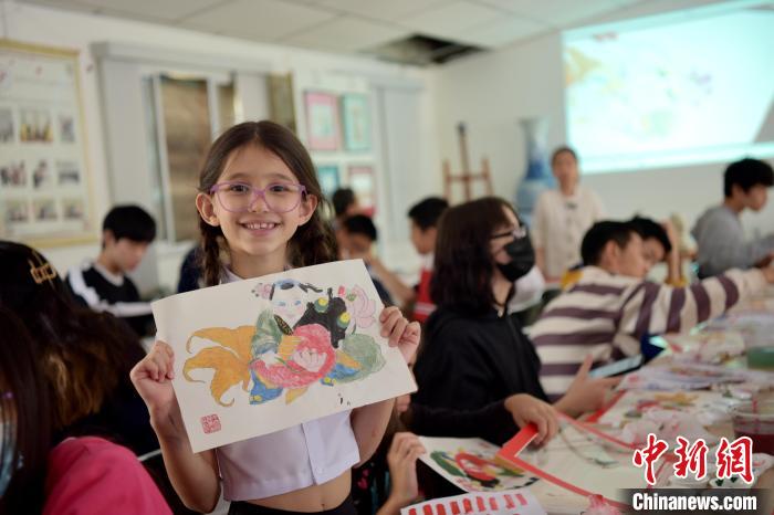 當(dāng)?shù)貢r(shí)間9月10日,天津楊柳青木版年畫(huà)博物館、巴西圣保羅華僑天主堂中文學(xué)校聯(lián)合舉辦年畫(huà)傳承研習(xí)活動(dòng)。圖為一位巴西小學(xué)生展示她的年畫(huà)涂色作品。中新社記者 林春茵 攝