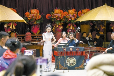 出生于1996年的小馬是位來(lái)自新疆的姑娘,到天津上大學(xué)以前幾乎沒(méi)聽(tīng)過(guò)鼓曲,來(lái)天津一下子陶醉在曲藝之鄉(xiāng)的氛圍里?!爸奥?tīng)相聲,現(xiàn)在追鼓曲,雖說(shuō)追得比較佛系,但票務(wù)平臺(tái)上我也買成了黑鉆會(huì)員?!毙●R說(shuō)她還有個(gè)大學(xué)同學(xué),因?yàn)橄矚g鼓曲,考進(jìn)了鼓曲社學(xué)習(xí),也許一兩年以后就能在臺(tái)上見(jiàn)到他?!皩W(xué)鼓曲難,我覺(jué)得當(dāng)鼓曲觀眾其實(shí)也不容易,”小馬表示這個(gè)“門檻”在鼓掌叫好的時(shí)機(jī)上,“鼓曲不像相聲,觀眾什么時(shí)候鼓掌,演員都能接上話,甚至發(fā)揮幾句。鼓曲聽(tīng)得明明很想鼓掌,可生怕時(shí)機(jī)不對(duì),打攪演員了,他就接不上了?!庇谑牵●R他們找到一個(gè)秘訣——看老觀眾叫好他們就跟著一起,慢慢地,似乎找到了點(diǎn)兒感覺(jué)。