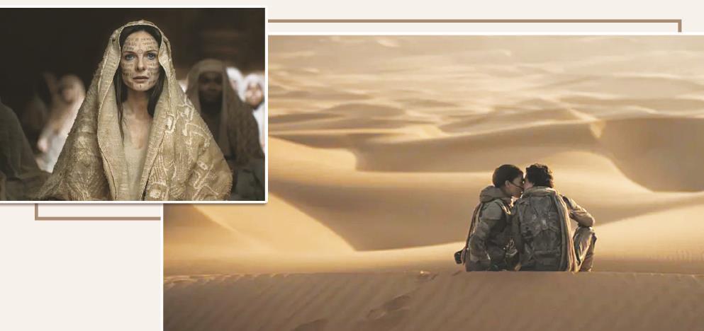 《沙丘2》延續(xù)了這個系列的特色,導(dǎo)演和幕后制作團(tuán)隊(duì)以莊重的古典美學(xué),再造了一個凌駕于觀眾日常生活的“別樣的世界”。制圖:李潔