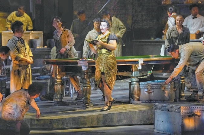 在某種程度上,《西部女郎》的音樂欣賞重心會向樂隊偏斜,音樂帶來的戲劇性值得玩味。尤其是厚重的銅管、猛地出現(xiàn)的長笛,塑造的情境與西部淘金世界的氛圍貼合。本次國家大劇院版《西部女郎》上演時,意大利著名歌劇指揮卡羅·利茲執(zhí)棒國家大劇院管弦樂團,營造出可圈可點的音樂意境。