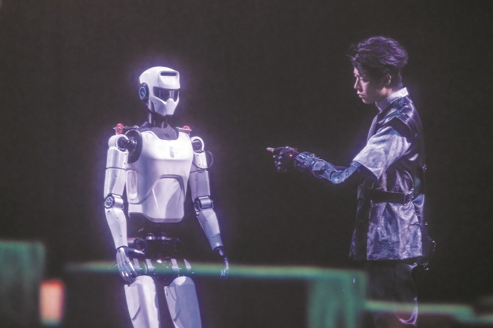 這是發(fā)生在中國大戲院長三角城市戲劇節(jié)中的最“科幻”一幕,國內(nèi)領(lǐng)先的機器人走出實驗室和展廳,以接地氣、親和的方式來到普通人身邊。面對這樣的場景,人們不再那么陌生——2025春晚上,張藝謀導(dǎo)演的《秧BOT》讓人形機器人略顯滑稽地扭起秧歌;上半年,半程馬拉松也迎來人形機器人“跌跌撞撞”的身影?!拔覀冊谔剿饕环N可能性,試著模擬發(fā)生在未來的場景?!薄毒尬镏恰匪囆g(shù)總監(jiān)、上海戲劇學(xué)院藝術(shù)科技與管理學(xué)院副院長沈倩對記者說,“無論對于機器人還是演藝產(chǎn)業(yè)來說,都具有破圈的意義。”誠然,機器人仍在亦步亦趨地努力跟上人類的節(jié)奏,但其不斷前進的腳步已經(jīng)令人激動。面對“人機共生”的時代命題,上海邁出了全國舞臺實踐的第一步。
