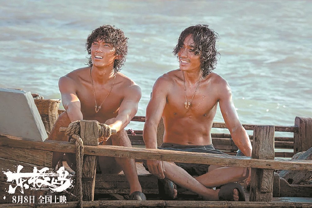 《東極島》劇照,朱一龍(右)飾演阿赑,吳磊飾演阿蕩。兄弟倆從最初為生存出海,到目睹日軍暴行后主動(dòng)承擔(dān)責(zé)任,最終成為救援主力,主打“平凡人變英雄”的成長(zhǎng)線。
