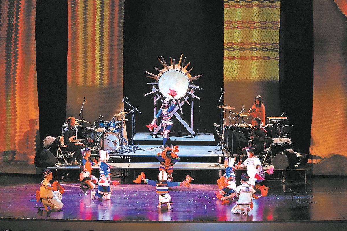 10月12日晚,一場(chǎng)將云南深山原始生命力融合跨越時(shí)空藝術(shù)想象力的演出登上北京舞臺(tái)。作為第二十八屆北京國(guó)際音樂(lè)節(jié)的重磅演出之一,由普利策音樂(lè)獎(jiǎng)得主、華人作曲家杜韻傾力創(chuàng)作,北京國(guó)際音樂(lè)節(jié)與美國(guó)林肯中心聯(lián)合委約的音樂(lè)劇場(chǎng)作品《刻在森林的?!吩诒本┫矂≡菏澜缡籽?。來(lái)自云南西雙版納的非遺項(xiàng)目基諾族大鼓舞傳承人何桂英,帶領(lǐng)8位基諾族少年,在舞臺(tái)上敲響大山里特有的聲音。