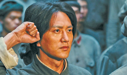 相比于以往表現(xiàn)毛澤東同志革命故事的作品,此次《浴血榮光》在如何表現(xiàn)建軍過程的影像上下了很大功夫。導演陳力做了精心設(shè)計,她讓影像不僅還原歷史,還富有更為深刻的寓意。比如,毛澤東在湖南發(fā)動秋收起義前,前往萍鄉(xiāng)安源煤礦的兵工廠,和工農(nóng)兄弟一起鍛造鐮刀與斧頭等武器,他在畫面的黃金分割點慷慨演說,鋼鐵熔爐里火紅的光芒照射在他身上,充滿油畫般的力量感和造型感,也寓意著人民軍隊就誕生于工農(nóng)中。