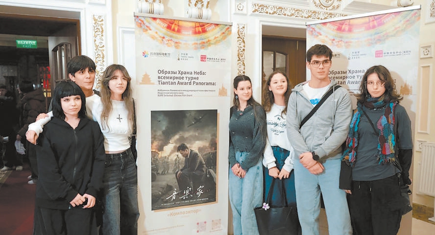 俄羅斯觀眾熱情參加北京電影“走出去”交流活動,與喜愛的電影海報合影。