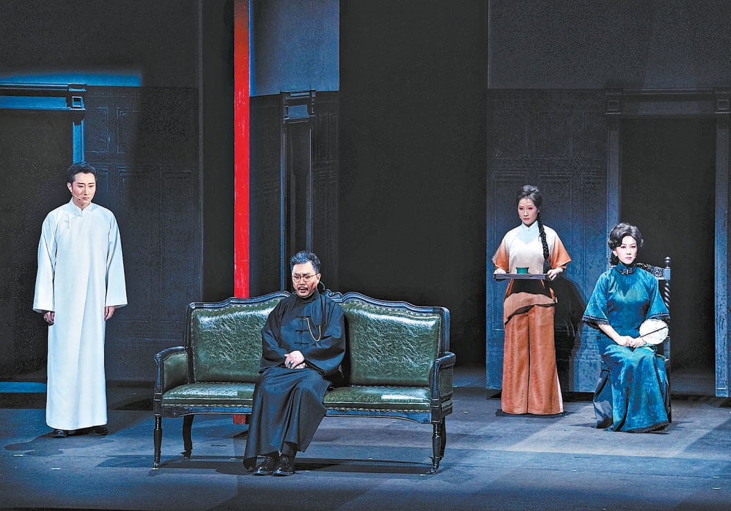 在音樂上,《雷雨》有意“收斂”了北京曲劇劇種基因里的濃郁京味兒,作曲家戴頤生雖以北京曲劇傳統(tǒng)單弦牌子曲為根基,但在傳統(tǒng)樂隊(duì)中混編西洋樂器,最大限度地為這個并非京味兒的題材匹配相稱的、民族化與交響性并重的音樂風(fēng)格。北京曲劇的幾代演員堅(jiān)守程式規(guī)范,以扎實(shí)的功底、細(xì)膩的表演塑造了《雷雨》中性格鮮明的一眾角色,展現(xiàn)了劇種傳承創(chuàng)新的活躍生命力。