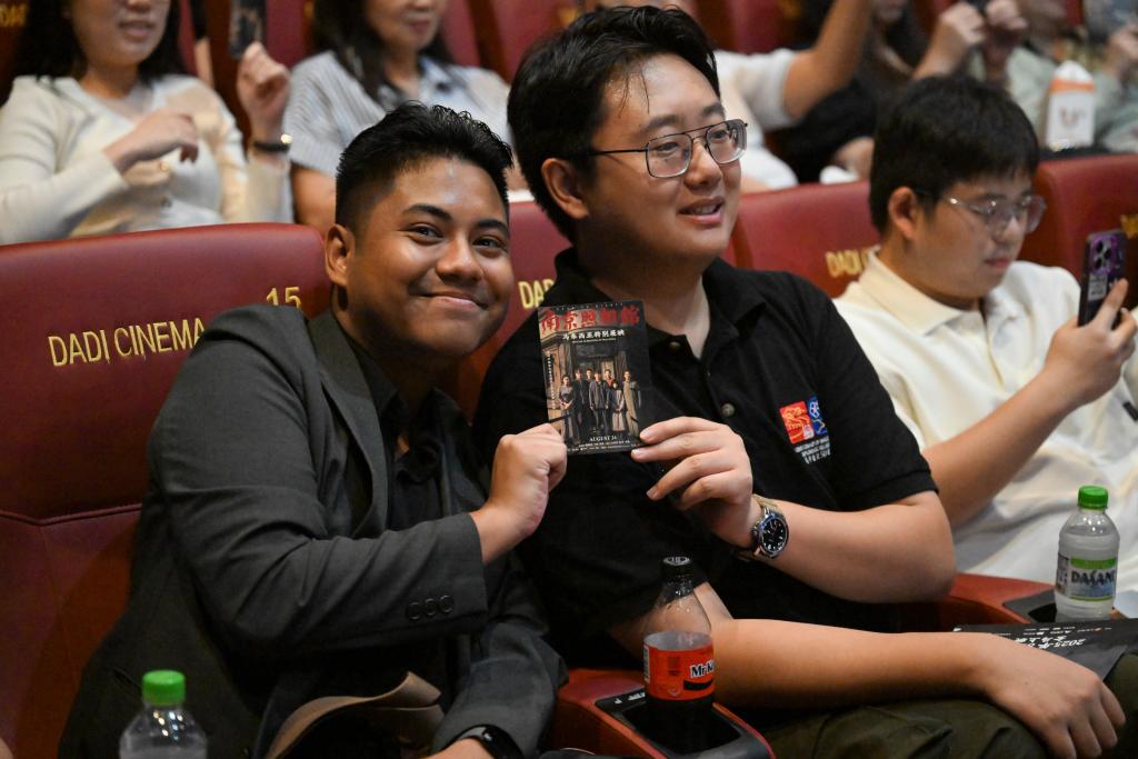 8月24日,在馬來(lái)西亞吉隆坡,觀(guān)眾在《南京照相館》馬來(lái)西亞首映禮上展示電影票。新華社記者 程一恒 攝