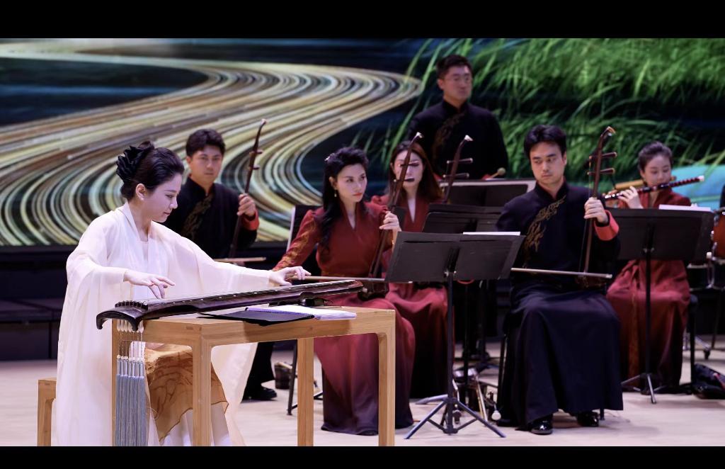 音樂會上,復刻春秋古制的古琴與珍稀老琴同臺亮相。古琴演奏家路寧攜手中央民族樂團演奏家們,以《源》《神游》《清泠》《醉枕石》《云水吟》等8首全新編創(chuàng)作品為紐帶,讓古琴清微淡遠的音色與大運河“流動史詩”的氣質深度相融,完成跨越時空的對話。