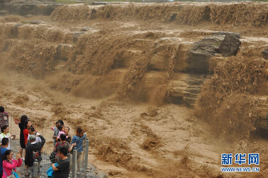 受上游強(qiáng)降雨影響,黃河壺口瀑布水勢大漲,主副瀑布連成一片。