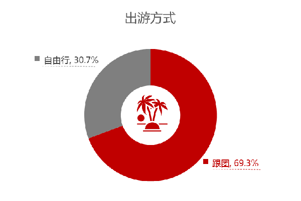 出游方式方面,跟團游為主要的出游方式,占比60.8%,自由行占比33.2%,目的地參團占比6%。