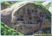 在峪古三面直立陡峭的巖壁上,布滿了人工刻鑿的石室,或長方形,或方形,大的二十多平米,小的僅3-4米;或單間,或2-3室通連;或套間平行,或上下兩層,并有典型的"三居室"。 其中 ,有一石穴上下兩層,并配耳房,廊柱歷歷,可能是穴居的主人集會或祭祀之地,宏敞雄偉,山民俗稱"官堂子"。 全部洞穴內(nèi),門、窗、炕、灶、馬槽、壁櫥、煙道等一應(yīng)俱全,且圓則圓,方則方,均中美學(xué)規(guī)矩。