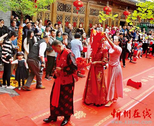 5月1日,不僅是國際勞動節(jié),很多新人也會選擇在這一天舉行婚禮。忻州市民潘先生和智女士就是其中的一對。這一天,他們在傳統(tǒng)中式婚禮儀式中邁入婚姻殿堂。古色古香的四合院,一排排大紅燈籠串著喜慶,一把把七彩陽傘溢著吉祥;紅彤彤的地毯鋪滿幸福,熱騰騰的油糕粘著美滿。一段紅絲綢,牽著新人的手,牽著一生一世的愛情,跨火盆馬鞍,拜過天地高堂,夫妻對拜,揭開紅蓋頭,點上紅喜燭,再喝一杯交杯酒……講究、喜慶的傳統(tǒng)中式婚禮環(huán)節(jié)讓兩位新人和到場賓客感受到了中國傳統(tǒng)文化的魅力。 傳統(tǒng)婚禮是中國文化精粹之一,婚禮習(xí)俗也源于中國幾千年的歷史文化積累,孝敬、祝福、吉祥更是成為中式婚禮上的主題,幾乎婚禮的每一項禮儀都滲透著中國人婚禮習(xí)俗的哲學(xué)思想。后來隨著時代發(fā)展,中式婚禮漸漸退出了人們的視線。很長一段時間無論在鄉(xiāng)村,還是城市,大家推崇的都是西式婚禮,新娘乘坐的工具也由原來的花轎換成汽車,婚車也從最初的普通小轎車到現(xiàn)在超長的凱迪拉克或賓利等高檔車。每當(dāng)節(jié)假日,我們時常會見到十幾輛結(jié)婚用的小轎車,浩浩蕩蕩,魚貫而行地駛過,場景甚至比上世紀(jì)60年代的國賓車隊還威風(fēng)、氣派?,F(xiàn)如今,越來越多的新人選擇中式婚禮,是傳統(tǒng)婚禮文化的一種回歸。
