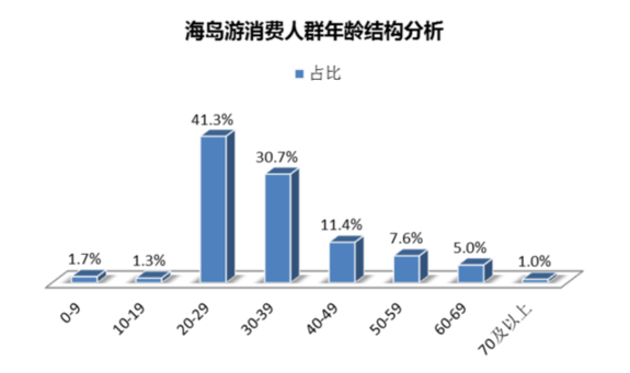 《報(bào)告》基于同程旅游最近一年的海島游消費(fèi)用戶數(shù)據(jù)所做的分析顯示,20至39歲這一年齡層占比超過(guò)七成,是海島游的核心消費(fèi)人群。另外,19歲以下人群占比3%,其中0-9歲占比1.7%,表明親子家庭已經(jīng)成為海島游的重要客群。