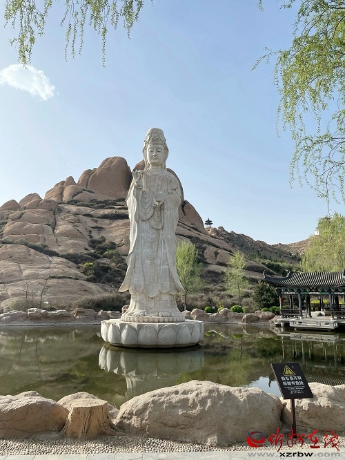 觀音像 (梁艷 攝) 從原平市驅(qū)車東行十余里,過滹淪河大橋,即是天涯山風(fēng)景區(qū)。重巒疊峰,山勢(shì)險(xiǎn)峻,奇峰怪石,峭壁聳峙。山尖似箭,直插云霄。天涯山西北山麓,有一妙峰,形似蓮花,稱蓮花山。蓮花山東南有一奇石,稱石鼓??h志記載:“天涯山有石,形似鼓,不待琢已成器,惟應(yīng)觀而像園,鼓非革生音,從石中發(fā)清虛之雅奏,超塵溘似和鳴?!痹娙嗽脝栐娰澠湓唬骸盁ㄆ鹕届`槌石鼓,漢女湘妃出歌舞。”