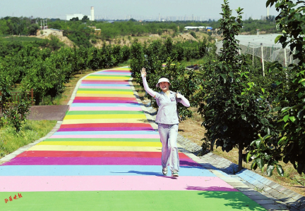 清清蘋果共享農(nóng)莊,青山環(huán)繞,果樹成蔭,青翠的果樹與彩虹步道交相輝映,每一口呼吸都是自然的味道?!拔沂且粋€‘果三代’,種蘋果是基于一種情懷?!鼻迩逄O果共享農(nóng)莊負(fù)責(zé)人武祝琴說。