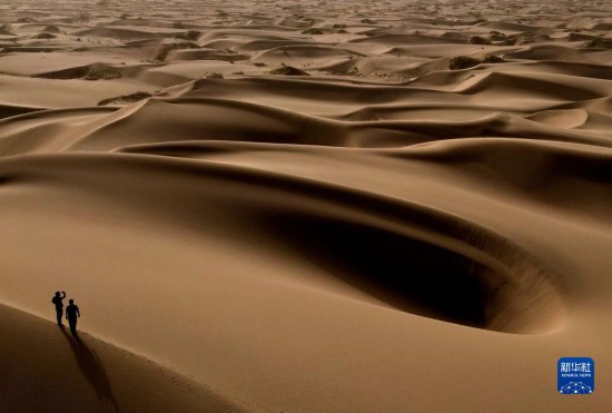 這是9月7日在新疆喀什地區(qū)麥蓋提縣N39°沙漠旅游景區(qū)拍攝的沙漠風(fēng)光(無(wú)人機(jī)照片)。
