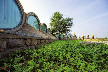 利用碾盤、碑頭等舊石刻和礦山廢機具打造景觀藝術作品數(shù)百件;將“煤改電”后廢棄的鍋爐房,創(chuàng)新改造為云岡圖書館并面向社會開放;用廢棄水泥塊和各種舊磚塊、舊石雕,修建了頗具歐式風格的云岡文保大樓圍墻,尤其是由城市廢舊地下排水管等材料打造成的一排排蝸牛公寓格外引人注目。蝸牛公寓頂棚上安裝的一個個圓形玻璃窗,是用篩煤設備改造成的,上面鋪設的太陽能發(fā)電板,在自給自足的同時還可向景區(qū)供電。蝸牛公寓聯(lián)排房間均是由廢棄管道改造成的,大廳內(nèi)有會客廳、洗漱池、公廁等設施,地下則利用原有礦山廢棄菜窖改造成放映室、酒吧、餐廳等。蝸牛公寓不遠處還有用廢舊鍋爐改造而成的膠囊公寓,在綠草叢中別有風趣。這些建筑極大地豐富了云岡文化內(nèi)涵,開創(chuàng)了全國首家世界遺產(chǎn)地利用固體廢物營造景區(qū)景觀的新路,對大同市乃至全國景區(qū)生態(tài)環(huán)境保護有著深刻的教育和借鑒意義。