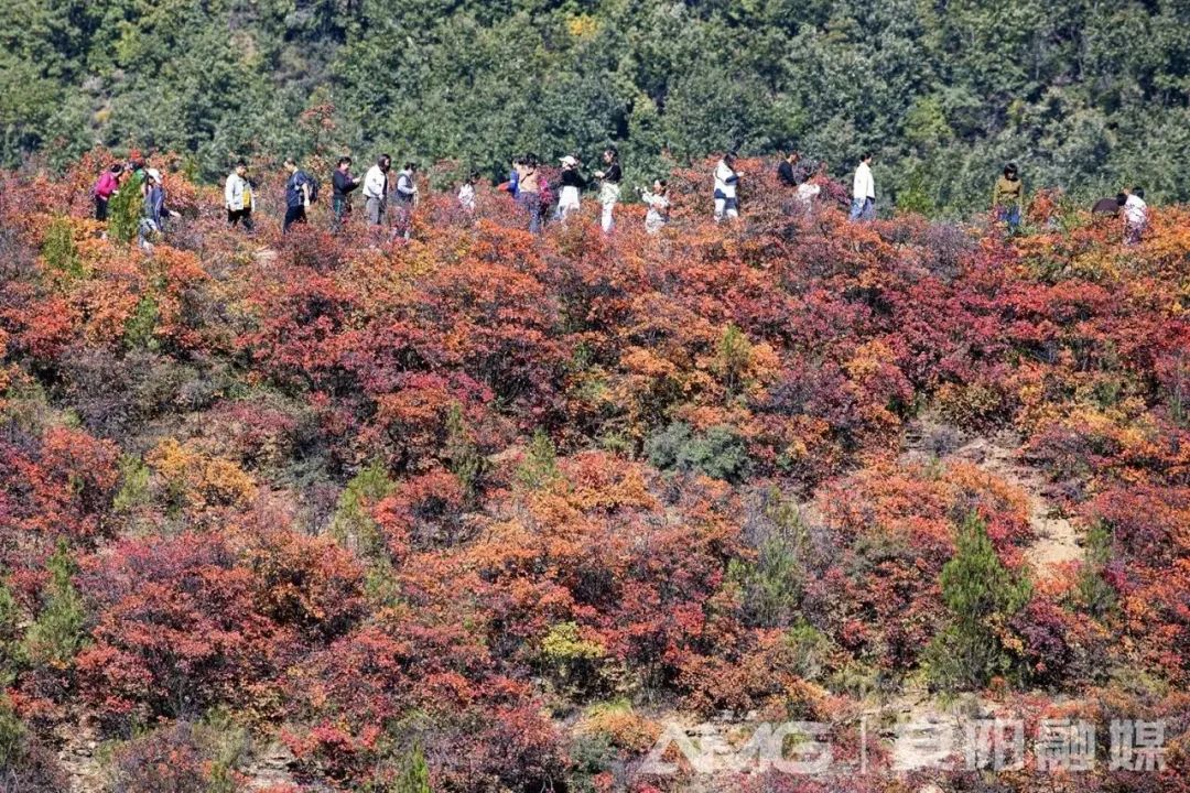 ??10月14日,河南安陽林州石板巖鎮(zhèn)韓家洼村紅葉漫山,層林盡染,吸引著各地游客前來觀賞。據(jù)悉,韓家洼村地處林州市太行深山之中,每年秋季,這里的紅葉較其他地方紅得早。(圖:曲海慶/攝)