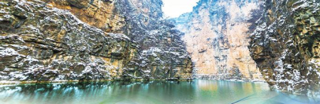 冬季的太行山大峽谷到處是冰瀑,比夏季更有看頭,是難得一見的美景。太行山大峽谷的山與水,在冰雪的映襯下,銀裝素裹、玲瓏剔透,像一幅素雅的國畫,儼然呈現(xiàn)出和北方其他山峰不一樣的冰雪景,深情款款地展示著它獨有的冰雪風(fēng)情。