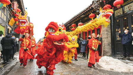南城墻上,大型彩燈絢麗奪目;興國寺舊址,手書春聯(lián)筆墨飄香;冀家老宅,古樸雅致悠悠中國風(fēng)……每年農(nóng)歷的正月十五,平遙古城會舉辦盛大的民俗活動——“平遙中國年”,讓游客感受到濃濃的傳統(tǒng)文化氛圍。逛廟會,看花燈,賞民俗……走在古城里,當(dāng)團圓時刻被濃濃的年味包圍,每個游客都能在古城里創(chuàng)造屬于自己的專屬年味記憶,與熱氣騰騰的年味撞個滿懷。穿越之旅·漢風(fēng)雅韻、古城活態(tài)游、社火表演等民俗活動在古城接連上演,讓游客體驗獨具平遙地方特色和晉商韻味的民俗民風(fēng),領(lǐng)略中國北方漢民族傳統(tǒng)文化的魅力。