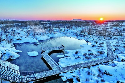 五大連池世界地質(zhì)公園位于黑龍江省黑河市,地處小興安嶺山地向松嫩平原的過(guò)渡地帶,境內(nèi)有14座火山和5個(gè)主要火山堰塞湖,擁有保存完整的火山地質(zhì)地貌,有“天然火山博物館”和“打開的火山教科書”等美譽(yù)。寒冬時(shí)節(jié),公園被積雪覆蓋,靜美而又壯觀。圖為1月29日拍攝的五大連池世界地質(zhì)公園溫泊景區(qū)冬日雪景。新華社記者 謝劍飛攝