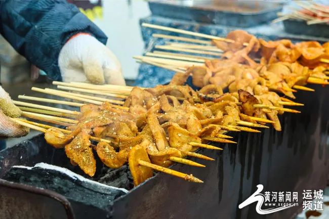人氣旺的不僅是文化園廣場,在文化園的小吃街,有三十多家美食攤位吸引游客前來打卡、品美食。炸油糕、烤面筋、糖葫蘆等黃河金三角特色小吃數(shù)不勝數(shù),每一個攤位前都擠滿了游客?!斑@里不僅可以品美食,還可以購買平陸本地特產(chǎn),比在老家趕集還熱鬧?!眮碜院幽系膹埾壬蛴浾弑硎尽S慰蛡兇┧笤诟鱾€攤位間,挑選心儀的美食,匯聚起濃濃煙火味,滿足了群眾的“舌尖之歡”。