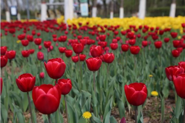 ▲晉陽(yáng)湖公園百萬余株郁金香進(jìn)入最佳觀賞期