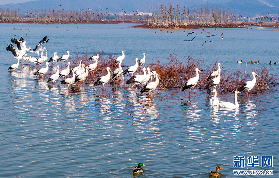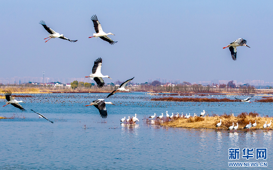 近年來,廬江縣加大黃陂湖濕地保護力度,4萬多畝的濕地環(huán)境得到較大改善。每年冬季,東方白鸛、白鶴等大量珍稀候鳥都按時來此過冬,萬鳥齊飛的壯觀場面已經(jīng)成為廬江縣黃陂湖濕地最靚麗的風景。新華網(wǎng)發(fā)(左學(xué)長 攝)