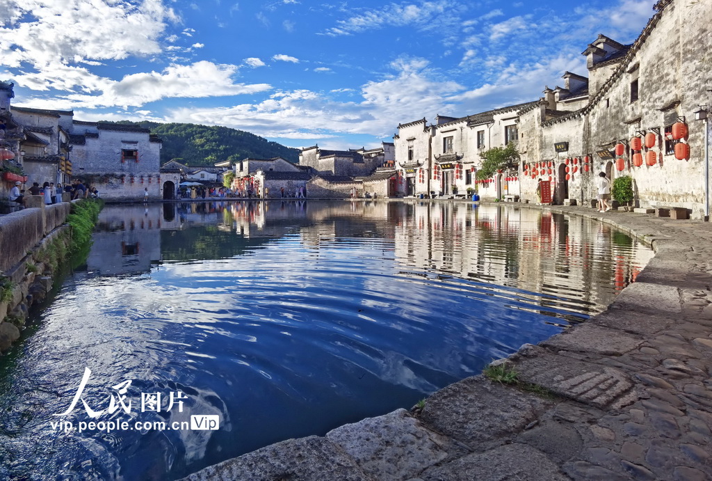 2025年7月20日,安徽黃山市黟縣宏村風景旖旎,宛如一幅天然的水墨畫卷,讓人流連忘返。楊潔攝(人民圖片網(wǎng))