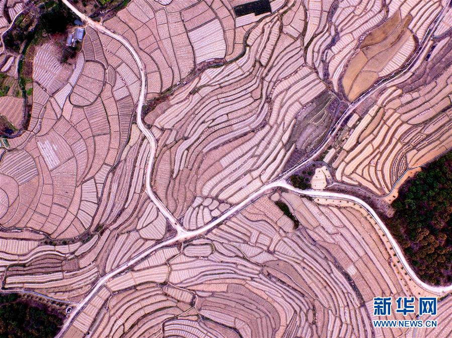 這是3月14日航拍的廣西百色市右江區(qū)永樂鎮(zhèn)西北樂村西瓜梯田景色。時下,廣西百色市右江區(qū)永樂鎮(zhèn)西北樂村進入西瓜種植護理季節(jié),地膜縱橫交錯的層層瓜田和壯族村落構成一幅美麗的田園畫卷。百色市右江區(qū)永樂鎮(zhèn)是廣西有名的西瓜之鄉(xiāng),全鎮(zhèn)種植西瓜1.5萬畝,年產西瓜2.8萬噸。新華社記者 黃孝邦 攝