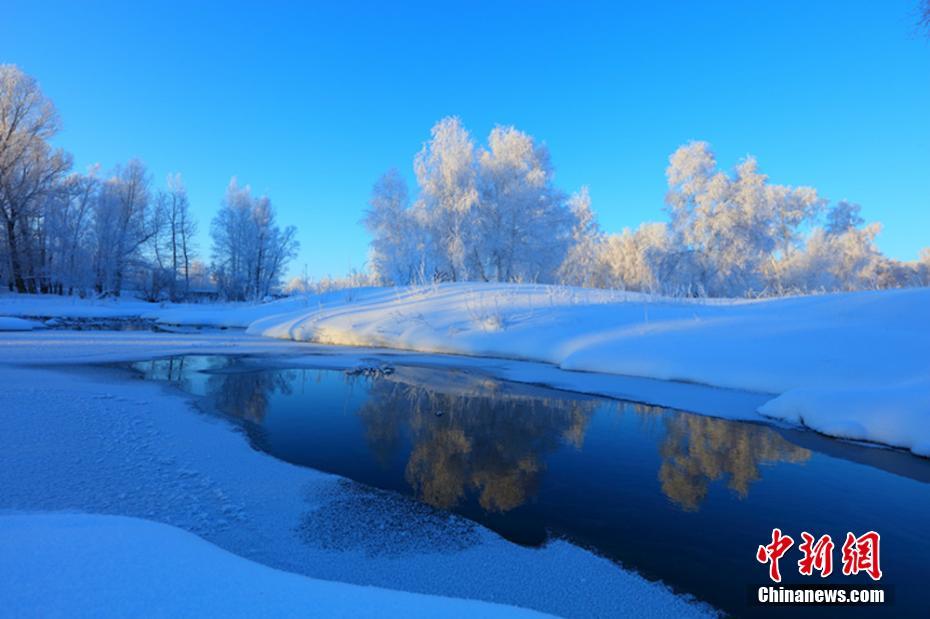 連日來,新疆北部持續(xù)低溫,哈巴河縣受寒冷天氣的影響,出現(xiàn)了大面積霜掛美景。一棵棵白樺樹被妝點成銀白色,晶瑩剔透,潔白無瑕,置身其中,如同進入夢幻世界一般。圖為清晨的哈巴河縣銀裝素裹,云霧繚繞。 劉是何 攝