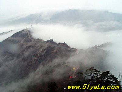 北武當(dāng)山主峰四周幾乎都是陡壁懸崖,只有一條人造“天梯”可攀。來(lái)到山腳下,過(guò)五里黃土、五里沙路,便是1400余級(jí)就山鑿筑的石階,凡險(xiǎn)峻之處,設(shè)有鐵索扶手。石階一線疊置,從下仰視,宛如“天梯”。游人攀登,每一步都可聽(tīng)到悠揚(yáng)頓挫的“石音”,形成獨(dú)特的“石樂(lè)”絕景。沿著石階,奇松異石、廟宇石刻,掩沒(méi)在蔥郁的山林植被之中,相間點(diǎn)綴,相映成趣。主要的山石景觀有:古猿望日、石豬受難、九龍出洞、石象守山、天壺傾露、石羊朝圣、石龜下蛋、石虎、石蛤蟆、龜蛇斗智等。最令人稱(chēng)奇的是“龜蛇斗智”奇觀,相傳神龜和青蛇不安心修道,互相格斗,經(jīng)過(guò)七七四十九天的麈戰(zhàn),神龜節(jié)節(jié)敗退,青蛇步步緊逼。其時(shí),恰逢真武大帝返宮,見(jiàn)狀,輕輕用手指一點(diǎn),龜蛇便動(dòng)彈不得,從此永久停留在這里,成千古一絕——“蛇石”虎視眈眈,“龜石”尾臨懸崖,萬(wàn)斤重石,峭立崖畔,用力一推或經(jīng)風(fēng)一吹,便搖搖欲墜,令人心懸,所以又稱(chēng)風(fēng)動(dòng)石,為我國(guó)罕見(jiàn)的景觀之一。主要的奇松景觀有:鴛鴦松、迎客松、托天松、母子松等。最使人嘆為觀止的是“擎天探海松”,其松立于石階半道,樹(shù)身技分兩杈,一直刺青天,一枝瞰群峰。近金頂?shù)悄咸扉T(mén)石階,旁邊陡崖上刻有“喬松”二字,據(jù)載為清代道光年間永寧州牧王繼賢手跡?,F(xiàn)存喬松樹(shù)樁直徑近1米,可以想見(jiàn)其昔日雄姿。主要的懸崖峭壁有:千仞壁、舍身崖、鷹嘴崖等。還有呈垂直分布的植被,其色彩和花期隨季節(jié)變化,給北武當(dāng)山披上了“春粉、夏艷、秋紅、冬白”的盛裝。登臨武當(dāng)之巔,一覽眾山,但見(jiàn)遠(yuǎn)山蒼茫,近日含黛,松風(fēng)撲面,白云飄逸;只聞松濤陣陣,山泉潺潺,鳥(niǎo)語(yǔ)唧唧,似琴弦輕撥;夏秋之季,如晴空萬(wàn)里,金頂之下,叢林景觀相間,似七彩織錦;白云遠(yuǎn)處,群山連綿,猶如萬(wàn)龍翻騰,極為壯觀。