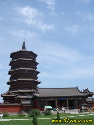 應縣木塔佛宮寺釋迦塔位于山西省應縣城內(nèi)西北佛宮寺內(nèi)。俗稱應縣木塔。塔總高67.31米,是我國現(xiàn)存時代最早的木結構高層建筑.佛宮寺釋迦塔建于后晉天福年間,遼清寧二年(1056年)重修。