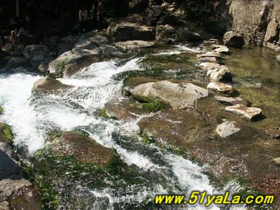 過了洗臉盆便是水簾洞。一股兩米寬的泉水從北峽溝的洞中涌出,緩流四五十米后順山崖直壁而下,一派“飛流直下三千尺”的磅礴氣勢。其后一深洞,嘩嘩瀑布落就半崖伸出的青石板上,打著飛快的漩渦卷人洞內(nèi),而后又從洞底端漏口處噴出,驚濤駭浪之聲震山蕩谷。泉水正是莽河之源。這個(gè)洞叫“出水洞”,一年四季泉水奔流不息。泉水流經(jīng)之處,有一個(gè)懸崖,形成瀑布,這就是莽河著名的風(fēng)景區(qū)“水簾洞”,因?yàn)閼已轮虚g有個(gè)洞,像是在瀑布中間有個(gè)巨莽的腦袋,蟒口大張,吸水噴霧,戲耍流泉。另有一塊巨石,像是一只烏龜從甲殼底下探出了頭,似乎在祈求幫助。嘩嘩瀑布落就半崖伸出的青石板上,打著飛快的漩渦卷人洞內(nèi),而后又從洞底端漏口處噴出,驚濤駭浪之聲震山蕩谷。
