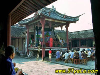 牛王廟戲臺在山西臨汾市西北25公里魏村牛王廟內(nèi)。戲臺建于元至元二十年(1283年),大德七年(1303年)毀于地震,至治元年(1321年)重建,明、清曾予修補。廟內(nèi)現(xiàn)存廊廡、獻亭、正殿、垛殿等。正殿供三王(牛、王、馬王、藥王),塑像俱存。戲臺為木構亭式舞臺,平面方形,單檐歇山頂,四角立柱各一根,前面及兩側前部敞朗,作為臺口,音響效果較好,背面及兩側后部筑以墻壁,還保留著宋金樂亭古制。臺上無后場之分,前檐用八棱石柱兩根,正面雕牡丹及化生童子,柱側刻創(chuàng)建與重修年代。臺上梁架迭構,額枋、蘭普、斗拱上下三層,形如龐大疏朗的藻井,簡練精巧。戲臺古稱舞亭或舞樓,宋、金時晉南一帶已有,元代相當普遍,但保存至今者較少。戲臺為研究元雜劇在山西一帶發(fā)展歷史和金元時期戲臺建造規(guī)制的重要資料。廟內(nèi)獻亭,造型別致,結構精巧,也是一處較為珍貴的古代建筑。