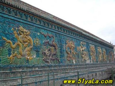 馳名中外的大同九龍壁,在我國現(xiàn)存最享盛名的三座九龍壁中,是建筑年代最早、尺度最大、而又最富藝術(shù)魅力的一座。(另兩座在北京,一座在北京北海公園,一座在北京故宮皇極門前,均建于清乾隆時代。較大同九龍壁要晚三百五十至四百年。)