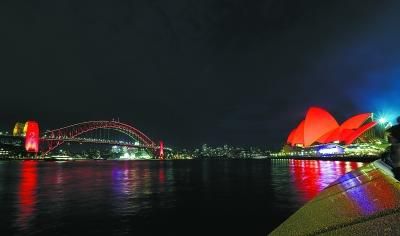 ▲2月4日,悉尼歌劇院和海港大橋同時(shí)點(diǎn)亮象征吉祥的紅色照明,悉尼環(huán)形碼頭也點(diǎn)亮了代表十二生肖的花燈。 新華社記者