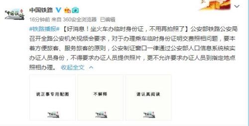 | 好消息!坐火車(chē)辦臨時(shí)身份證,不用再拍照了 |