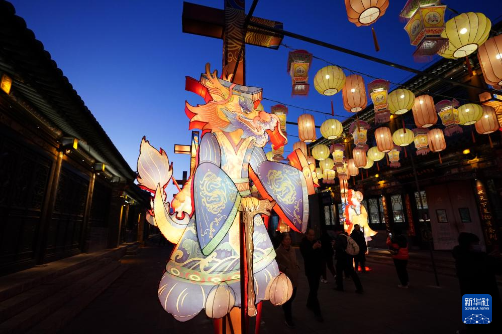 春節(jié)期間,在山西省太原市晉源區(qū)太原古縣城舉辦的“錦繡太原中國年·鳳舞龍城花燈會”上,各類花燈流光溢彩、璀璨奪目,吸引眾多游人前來觀賞。