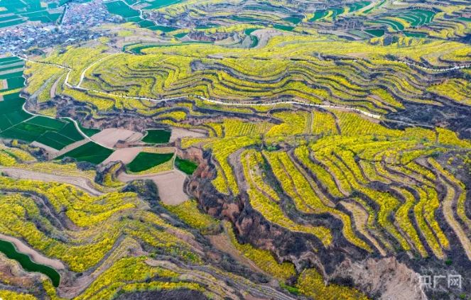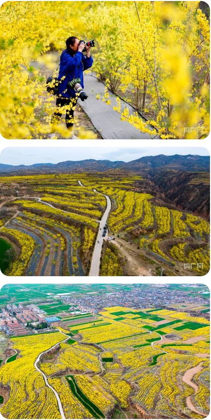 成片的連翹花隨著山勢(shì)起伏綿延(李現(xiàn)俊 攝)山西日?qǐng)?bào)新媒體綜合報(bào)道 眼下,山西臨汾市翼城縣南梁鎮(zhèn)近2萬畝連翹花迎春盛開。成片的連翹花隨著山勢(shì)起伏綿延,燦若金色云霞,一派春意盎然的景象,吸引眾多游人前來觀花海、賞春光。