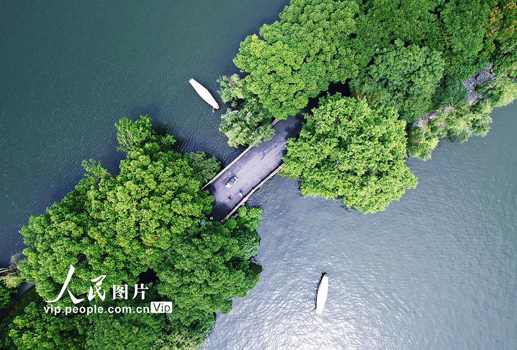 隨著暑假來臨,夏日的杭州西湖風(fēng)景區(qū)是景色宜人,引得眾多游客前來參觀游玩,感受江南園林美景,享受休閑時(shí)光。龍巍攝(人民圖片網(wǎng))