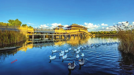 大同是山西的北大門?!逗谏裨挘何蚩铡?7個取景處中,大同占有5處,分別是云岡石窟、華嚴(yán)寺、懸空寺、善化寺、永安寺。夏末初秋,沐浴著清涼夏都的清風(fēng),走在大同的街頭,藍(lán)天澄澈、綠意蔥蘢、碧水盈波……這樣藍(lán)、綠、清交織的美景,繪就大同多彩生態(tài)畫卷。