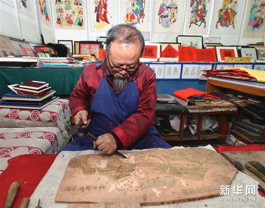 春節(jié)期間,山西省新絳縣的絳州木版年畫傳承人吳百鎖忙得不可開(kāi)交,來(lái)購(gòu)買“吉祥如意”“雄雞一唱天下白”等主題年畫的顧客絡(luò)繹不絕。山西省非物質(zhì)文化遺產(chǎn)絳州木版年畫發(fā)端于宋金,興盛于明清,從選料到雕刻再到上色都非常講究,一幅年畫的制作需要七八道精細(xì)工序。隨著時(shí)代的變遷,目前已鮮有專職雕刻、印制年畫的匠人。擁有嫻熟雕刻技藝的吳百鎖在傳承傳統(tǒng)工藝的基礎(chǔ)上,積極創(chuàng)作現(xiàn)代題材的作品,希望通過(guò)自己的創(chuàng)新讓更多少年兒童了解并愛(ài)上木版年畫,讓這門幾乎失傳的技藝綻放新的光彩。新華社記者 曹陽(yáng) 攝