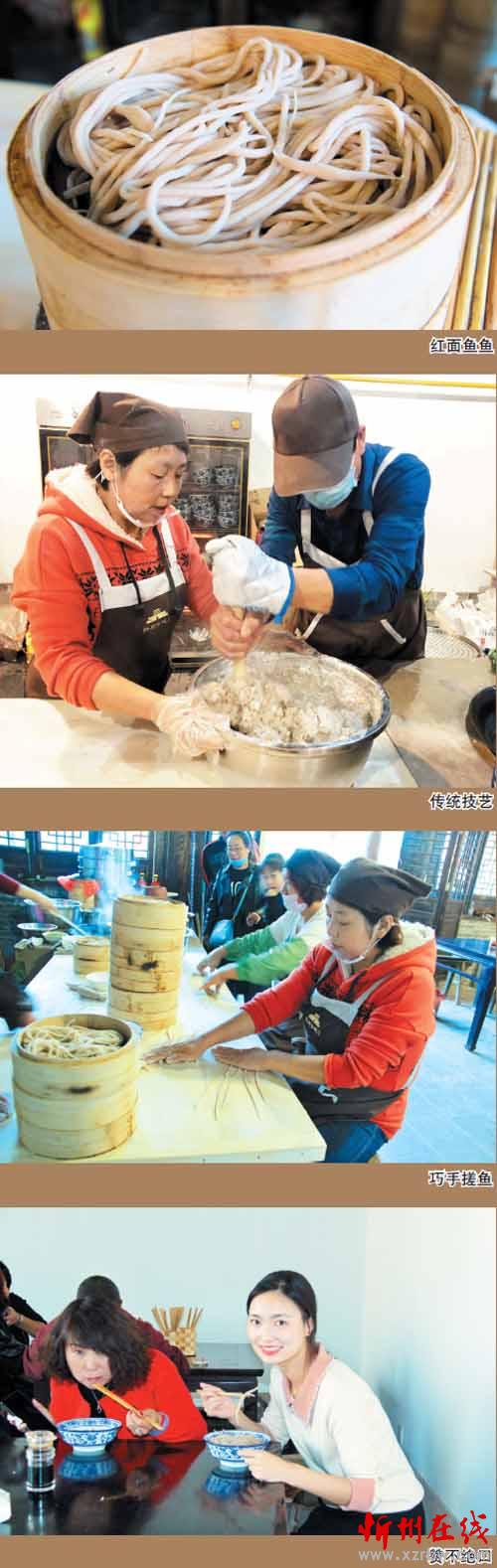這家店的女主人叫康秀蘭,今年51歲,忻府區(qū)豆羅鎮(zhèn)韓溝村人。秀蘭從小勤快,幫助母親洗鍋?zhàn)鲲垼瑢W(xué)搓魚魚。18歲時(shí)便遠(yuǎn)近聞名,掌握了搓魚魚的好手藝。在今年忻州古城招商比賽入圍的6家店鋪中,秀蘭的小店脫穎而出,奪得第一名,拿到了開門店的資格。眼下夫妻二人經(jīng)營著兩間大的門臉兒,小籠屜蒸魚魚,臊子有鮮肉蘑菇、西紅柿和老酸菜湯,食客們可根據(jù)自己的喜好選擇。他們兩口子既當(dāng)老板又是廚師。在食客多時(shí)臨時(shí)雇幾個(gè)幫工,小生意做得風(fēng)生水起。康秀蘭告訴筆者,自開張以來食客不斷增加,國慶節(jié)假期期間一天的最高銷售紀(jì)錄是賣出200多籠紅面魚魚。