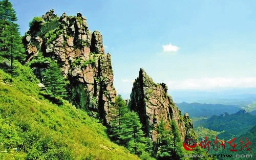 下車,站在山腳下,抬頭仰望,蘆芽山就像春天雨后的蘆葦芽尖,滴露吐翠,直刺云霄。連綿起伏的群山就像簇簇筍尖拱衛(wèi)著山的主峰。此情此景,讓我想到這大概就是“蘆芽”山名的由來吧。在導(dǎo)游的帶領(lǐng)下,上年紀(jì)的人買來爬山杖,一起踏上登山道,向山頂進(jìn)發(fā)。山上的樹大多是華北落葉松和云杉,筆直的樹干長得蔥蔥蘢蘢,幾百里連成一片,就像綠色的海洋。樹,因爭取陽光照射,挺直身軀往高里長,最高的樹有二十多米,矮的也有五六米,百年老樹隨處可見。不時見一道道山泉水,從山頂緩緩流下,匯成一條條小溪,溪水清澈見底,淙淙流向山底。小溪邊長滿了一叢叢、一簇簇的旱蓮,旱蓮的葉子碧綠青翠,像一把清涼的小傘,摘一片下來,頂在頭上,可以遮擋從森林中直射過來像利劍一樣的金光。調(diào)皮的小松鼠在游人的驚擾下,不斷在沾滿露珠的樹枝間跳躍,幾只巨大的蒼鷹在天空下盤旋,偶爾懶洋洋地扇動一下翅膀。