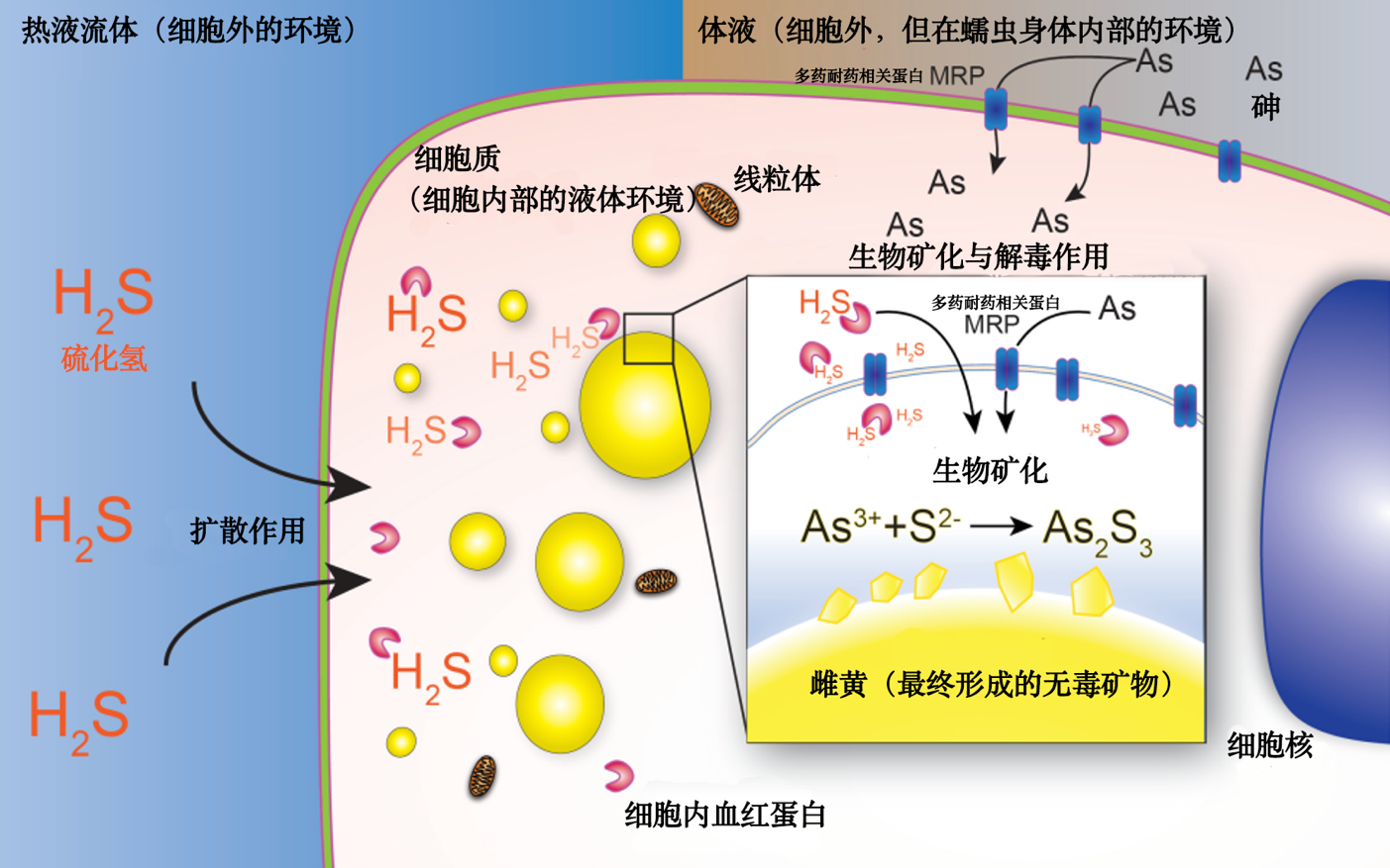 2025年8月,中國科學院海洋研究所的研究團隊在《PLOS生物學》(PLOS Biology)上發(fā)表了一項驚人發(fā)現(xiàn):赫斯帕拉爾文氏蠕蟲通過一種前所未有的“以毒攻毒”機制,將兩種致命毒素——砷和硫化氫——結(jié)合成無毒的雌黃礦物,實現(xiàn)了生物界首個已知的解毒性生物礦化。
